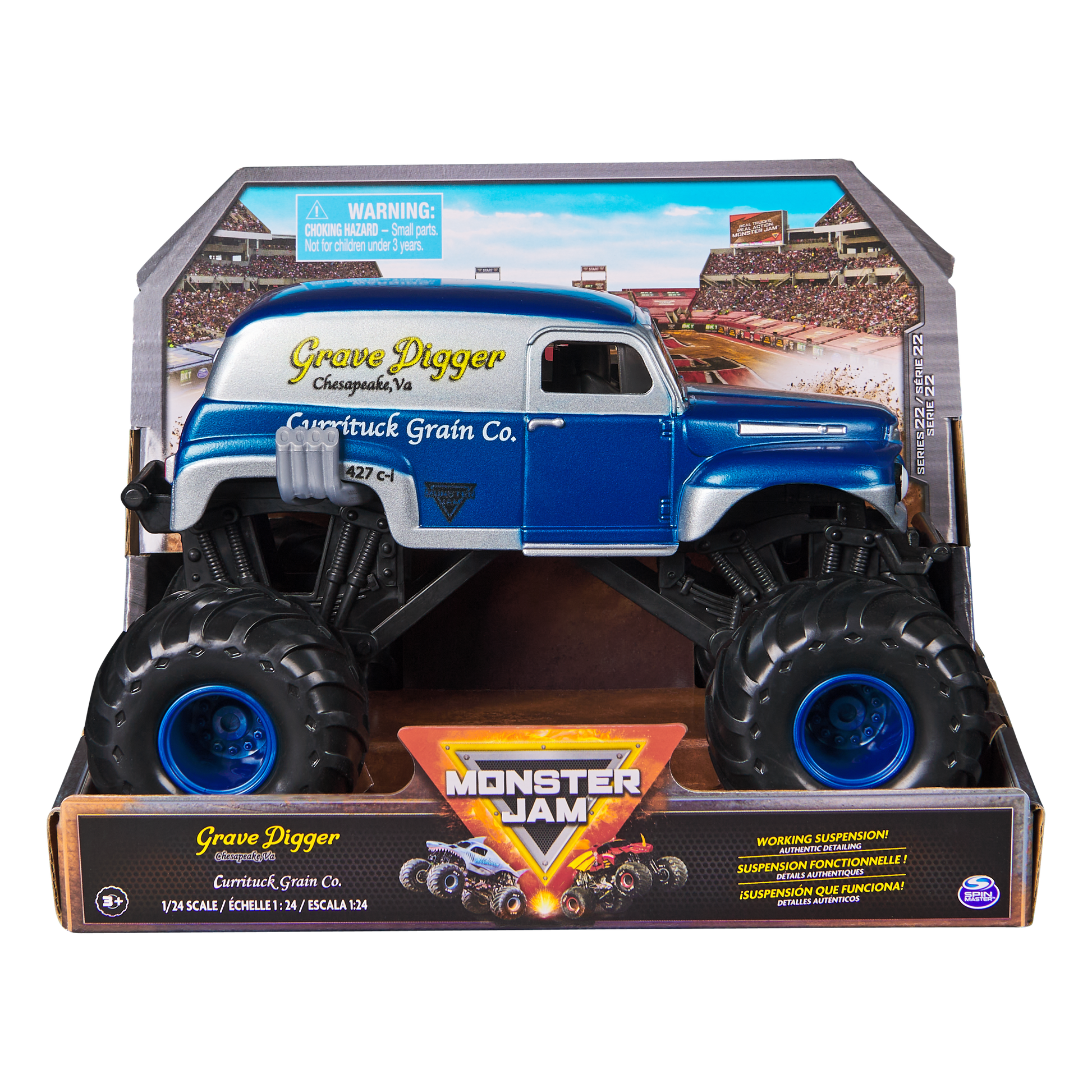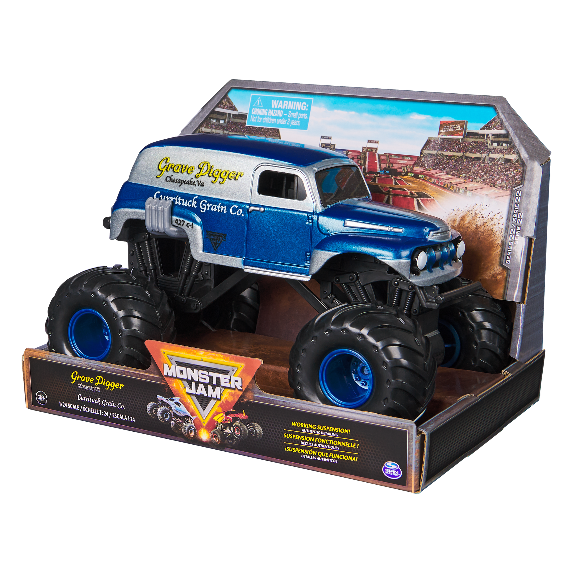 Authentic Monster Jam trucks with power, attitude, excitement and action! These 1:24 Monster Jam trucks have die-cast bodies with plastic chassis and roll cages, and oversized tires. Small Parts may be generated. For ages 3+
