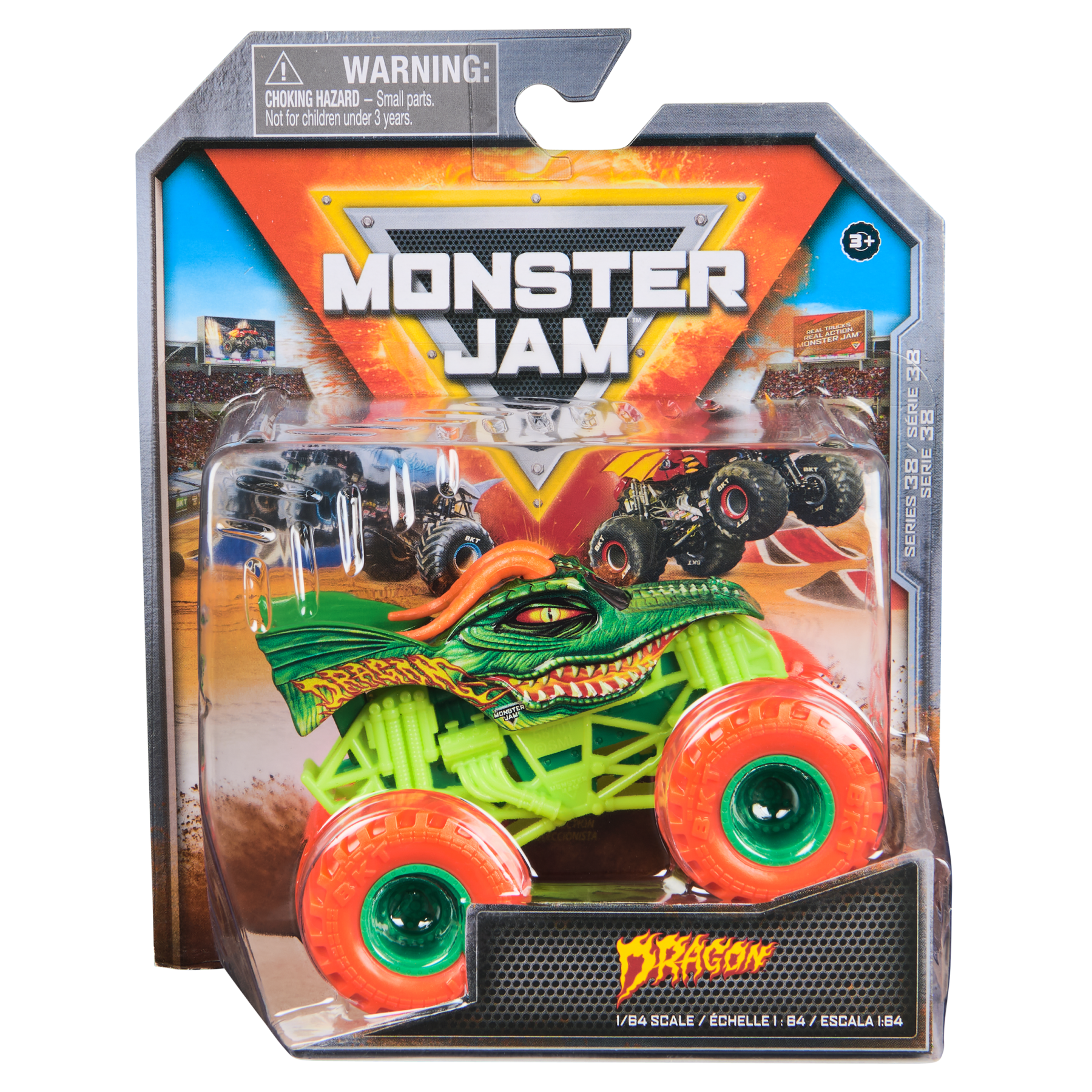 Authentic Monster Jam trucks with power, attitude, excitement and action! These 1:64 Monster Jam trucks have die-cast bodies with plastic chassis and roll cages, and oversized tires. Small Parts may be generated. For ages 3+