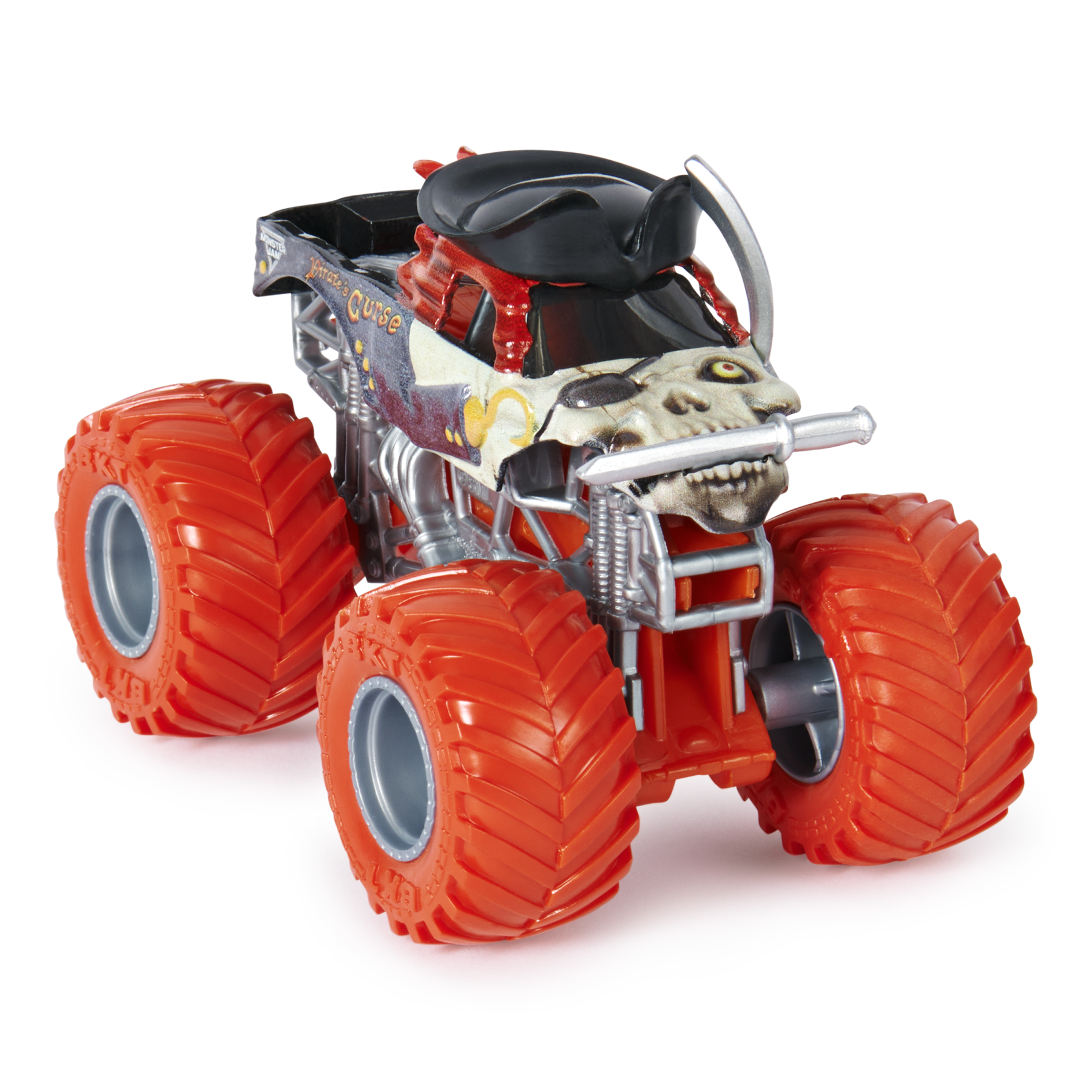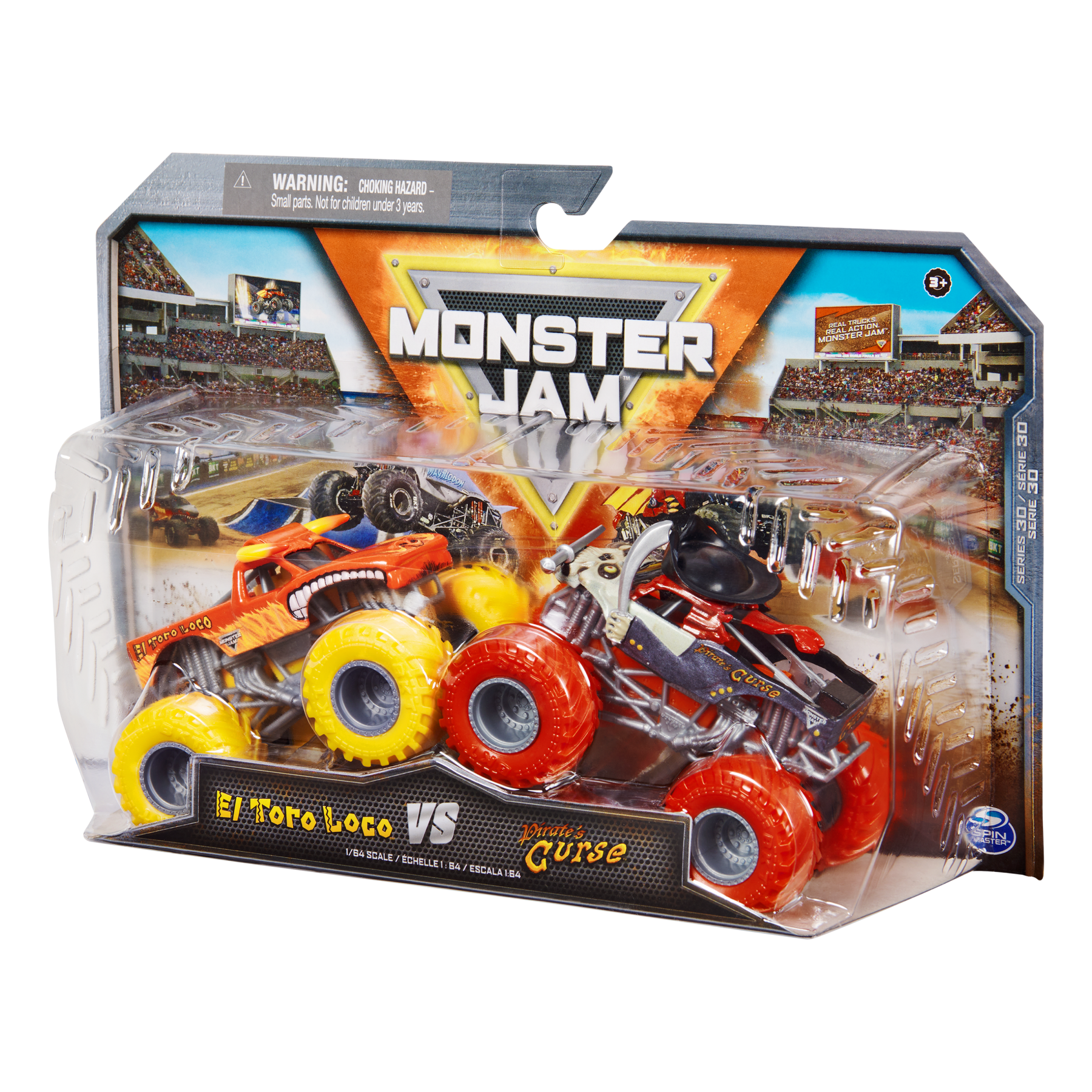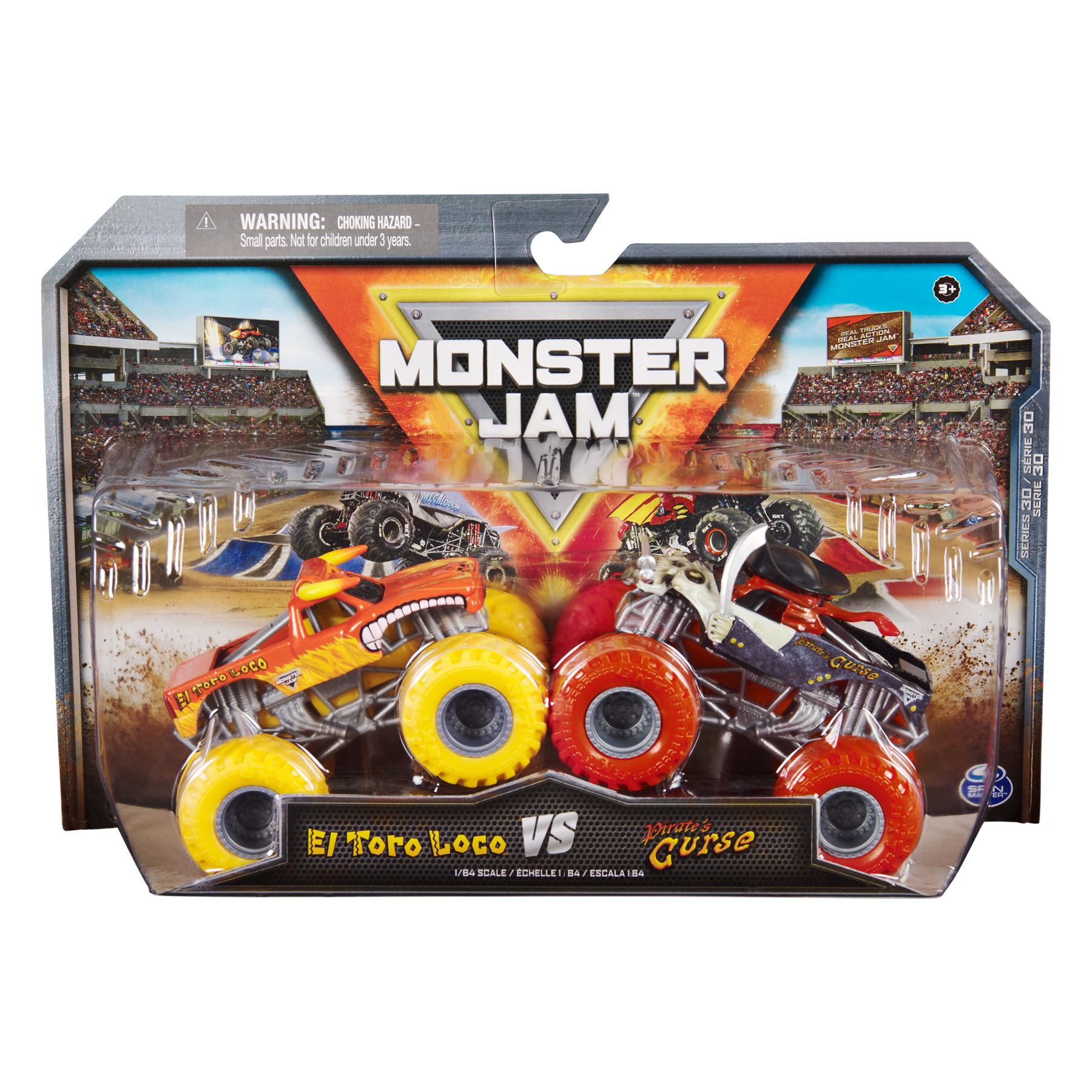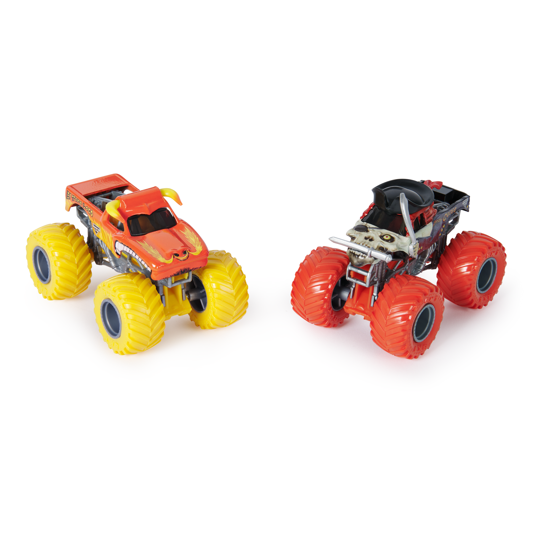 Authentic Monster Jam truck duo with power, attitude, excitement and action! These 1:64 Monster Jam trucks have die-cast bodies with plastic chassis and roll cages, and oversized tires. Small Parts may be generated. For ages 3+
