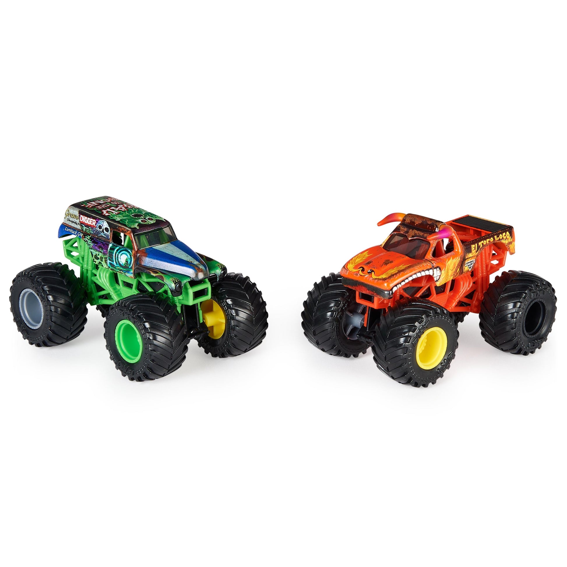 - HEAD-TO-HEAD ACTION: Put on an awesome Monster Jam show with the 2-Pack! Each set comes with 2 iconic Monster Jam monster trucks, including Grave Digger vs. Higher Education, Bulldozer vs. Racing Stripes and more!