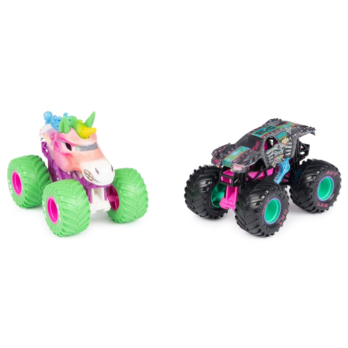 - 2 OFFICIAL MONSTER JAM TRUCKS: Create your own epic Monster Jam showdowns with the 1:64 scale die-cast 2-Pack! Each 2-Pack features the most popular and coveted trucks, ready to face-off!