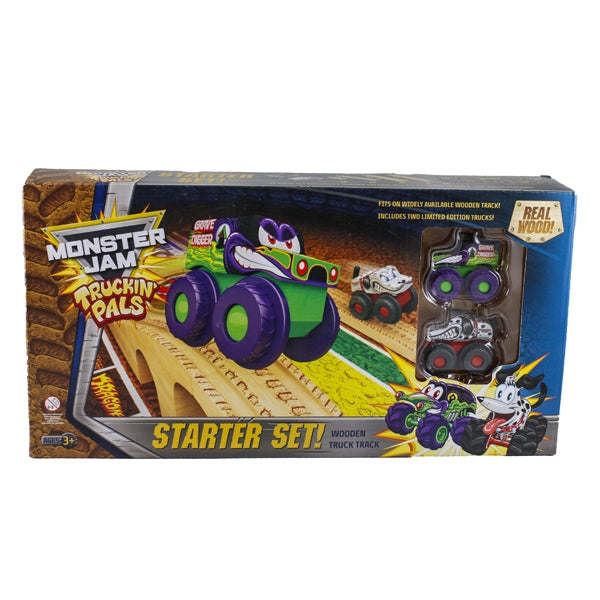 Create your own event taking a short sprint around the wooden track included in this Monster Jam Truckin Pals Starter Set - there will be endless high-octane fun to be found!