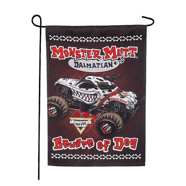 Rev up your yard with the Monster Mutt Dalmatian Garden Flag! This garden flag features the Monster Mutt Dalmatian truck, the iconic logo, and the tag line "Beware of Dog".