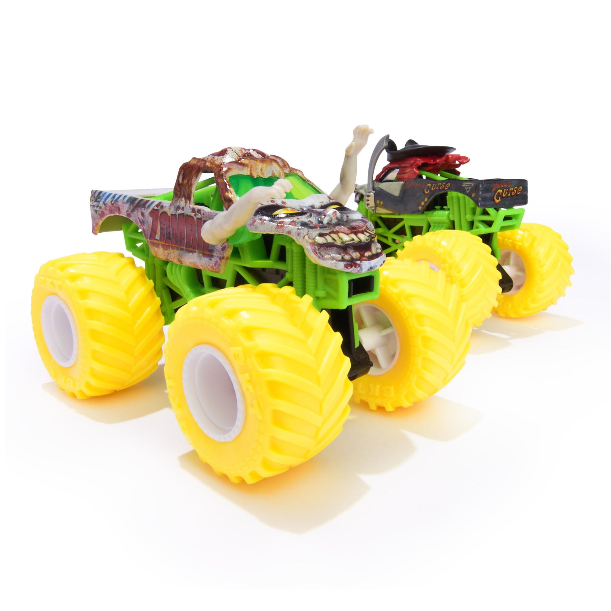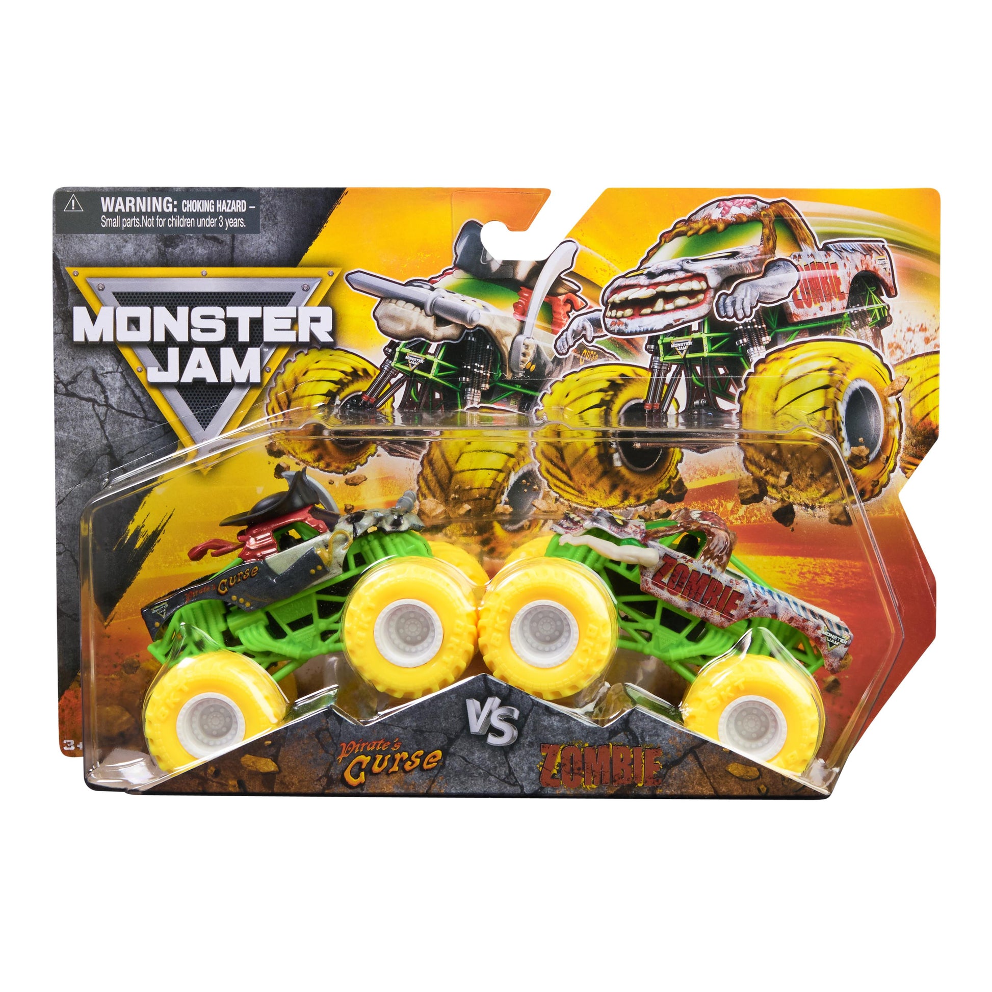 Authentic Monster Jam truck duo with power, attitude, excitement and action! These 1:64 Monster Jam trucks have die-cast bodies with plastic chassis and roll cages, and oversized tires. Small Parts may be generated. For ages 3+