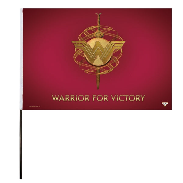 Rev up your house with the Wonder Woman Flag (14x22 in)! This house flag features the Wonder Woman logo across a slick red background and the phrase "Warrior For Victory".